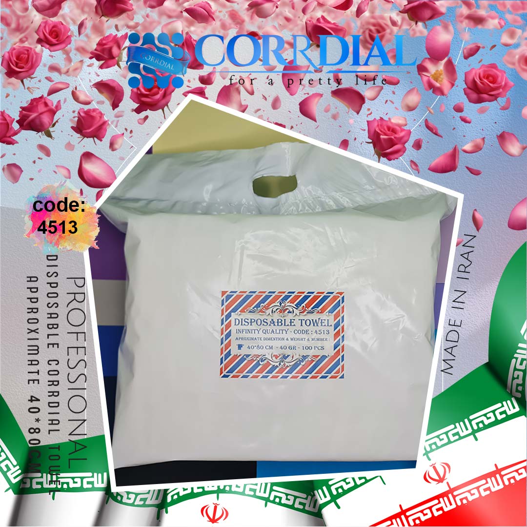 حوله یکبار مصرف آرایشگری اعلاء کردیال ( بسته 100 عددی سفید - عمده و خرده فروشی - اصلی + بیمه ارسال - حدودا 40 گرم و Professional Disposable CORRDIAL Towel - 40*80 )